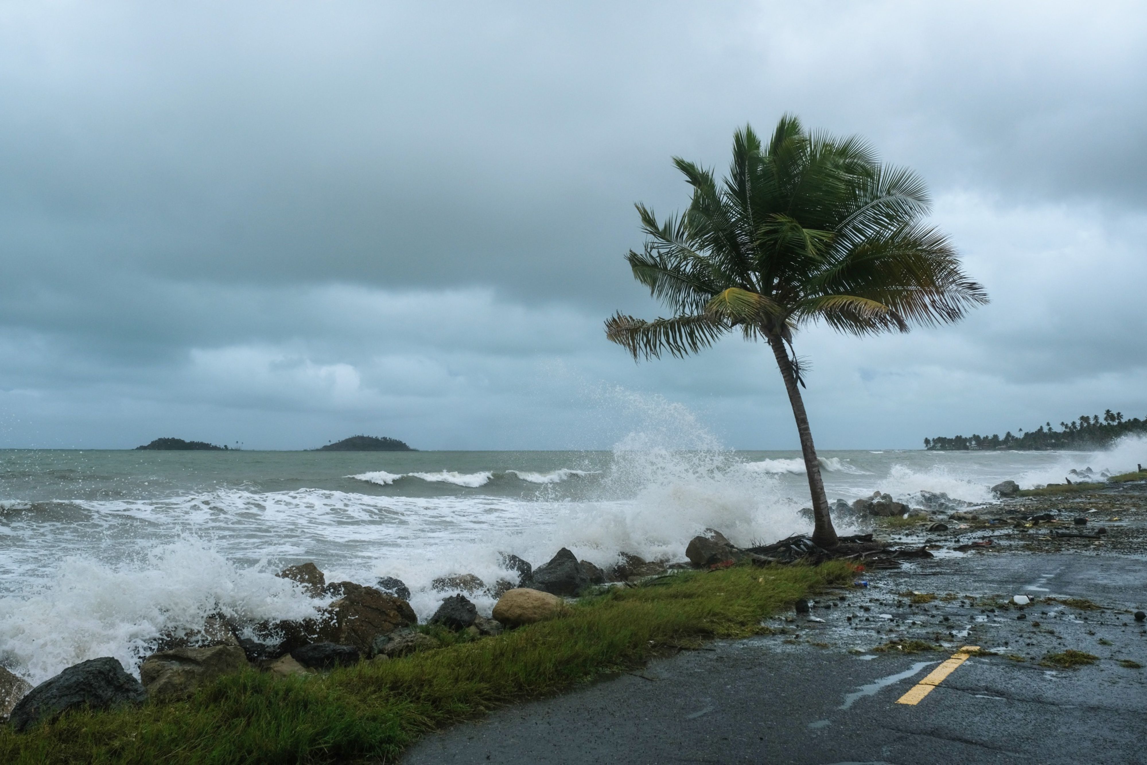 Waves crash onto rocks ahead of a tropical storm in Puerto Rico. (Photographer: Gabriella N. Baez/Bloomberg)