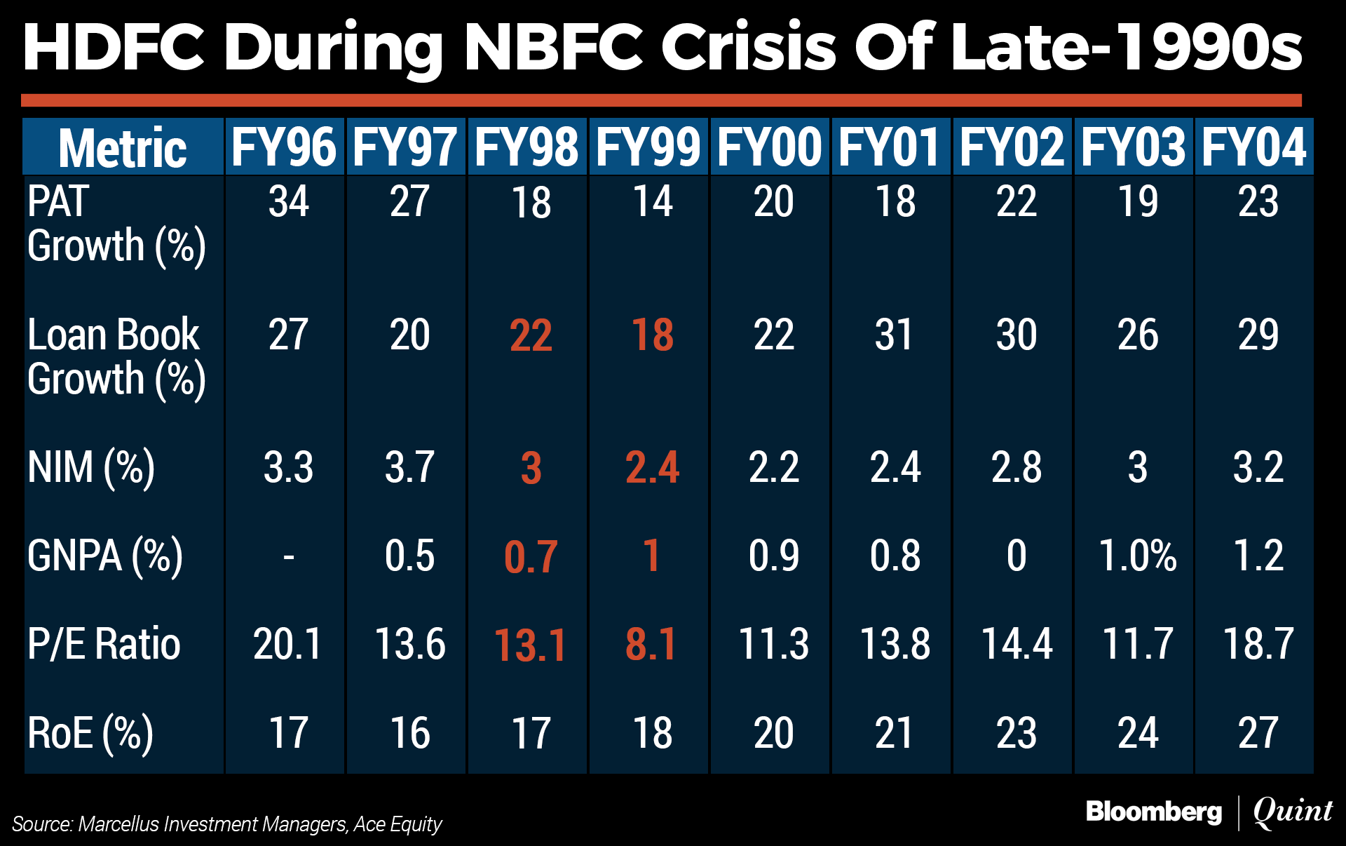 You can see an illustration of this from the table below which shows how HDFC came out of the late 1990s NBFC crisis as the king of the housing finance industry even as 80% of the NBFC industry went bankrupt between 1997-2000.