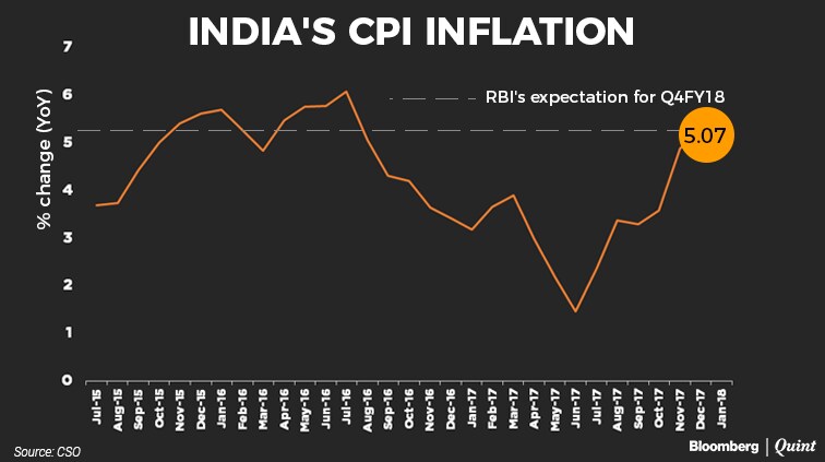 CPI inflation stood at 5.07 percent in January, according to data released by the Central Statistics Office today. Economists polled by Bloomberg had forecast retail inflation at 5.1 percent. Inflation had hit a 17-month high of 5.2 percent in December.