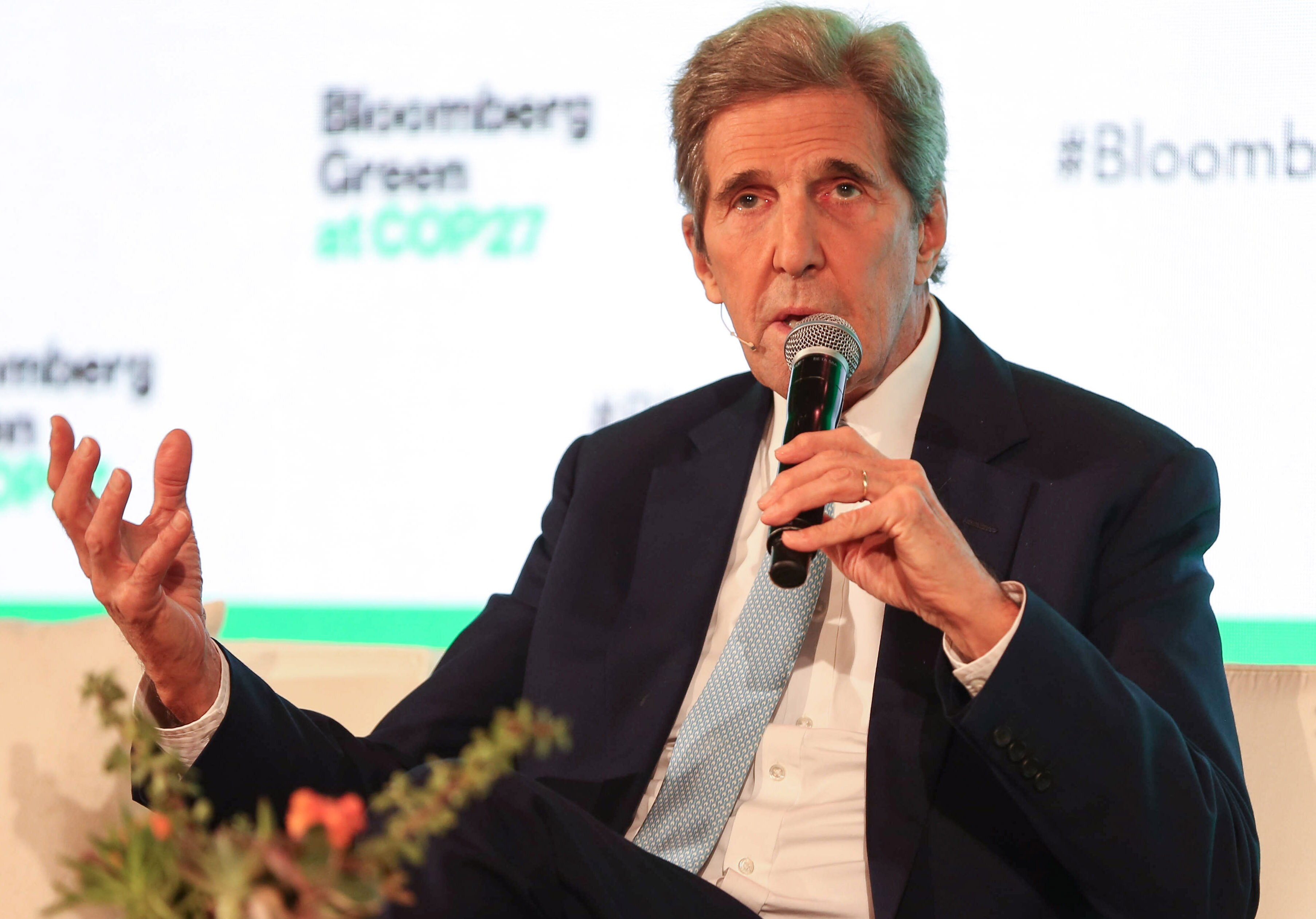 John Kerry, US special presidential envoy for climate speaks during during an interview at the COP27 climate conference in Sharm El-Sheikh, Egypt, on Wednesday.Photographer: Islam Safwat/Bloomberg