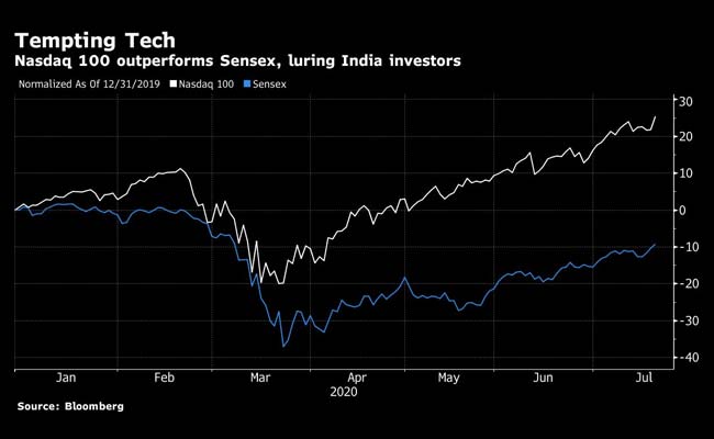 While the S&P BSE Sensex has rebounded more than 40 per cent from its March low, the gauge remains in the red for the year. By comparison, the Nasdaq-100 has rallied over 25 per cent in 2020 and reached a fresh record on Monday.
