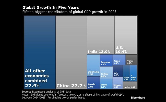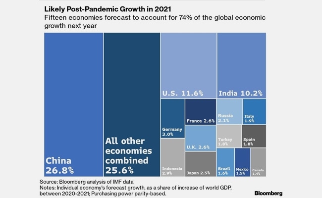 That's more than 15 and 17 percentage points, respectively, higher than the US share of expected global output. India, Germany and Indonesia round out the top five largest growth engines, next year.