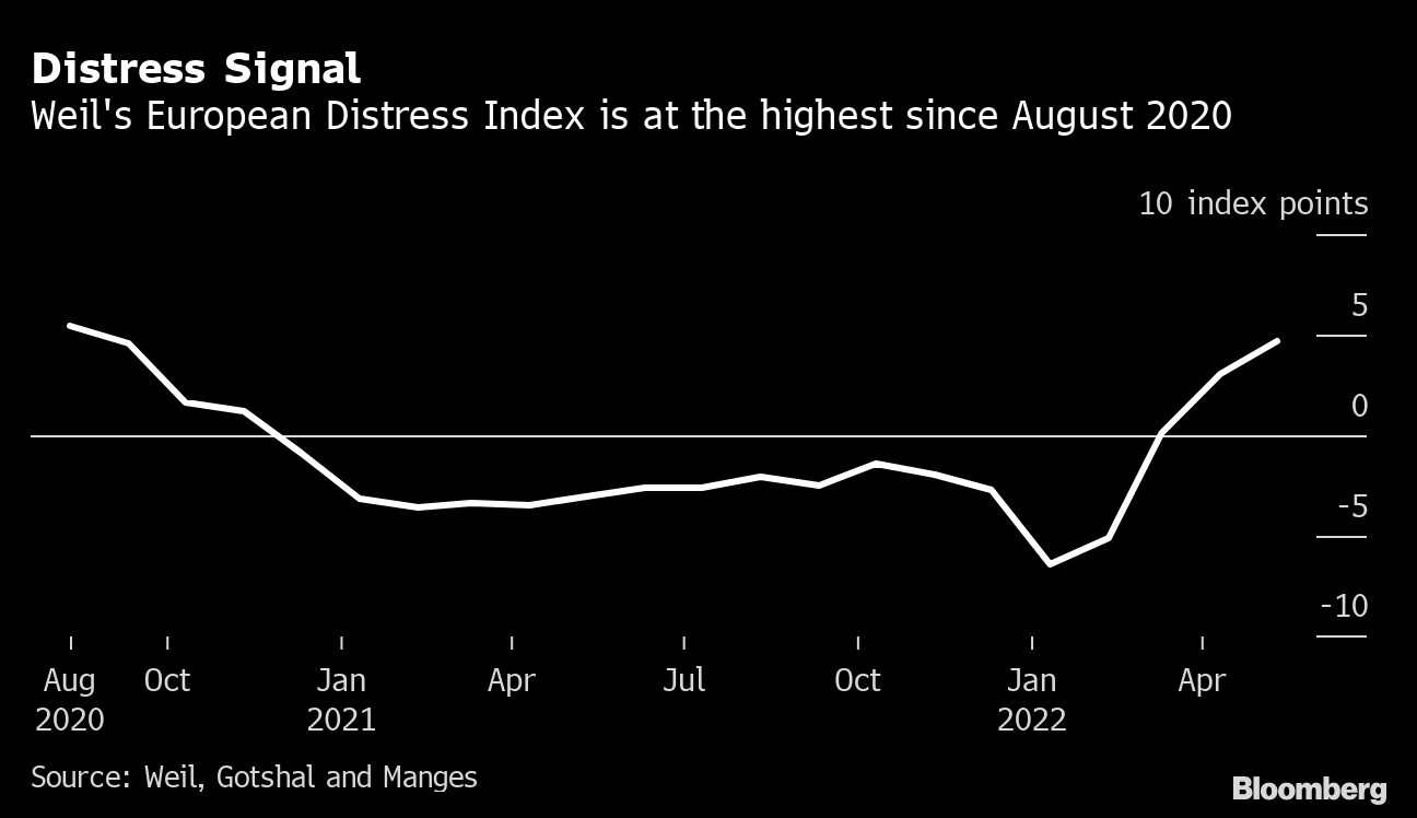 (Bloomberg) -- Corporate distress in Europe's biggest markets is near a two-year high as inflation and higher interest rates squeeze indebted firms.