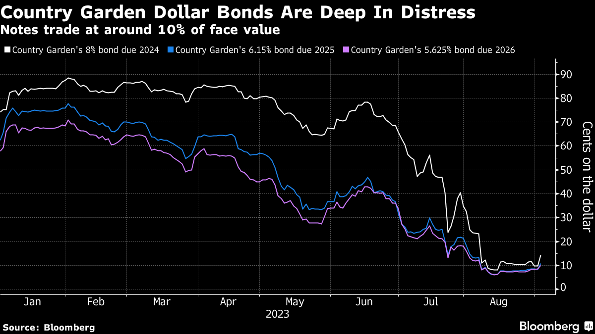 One key focus is a 1.435 billion yuan note with a put option Sept. 14. Country Garden must win approval to extend it, or risk the chance that holders could demand early repayment Thursday. The firm has left much smaller payments go right up until final deadlines recently, including a combined $22.5 million in interest it paid in the final hours of grace periods ending Sept. 5-6.