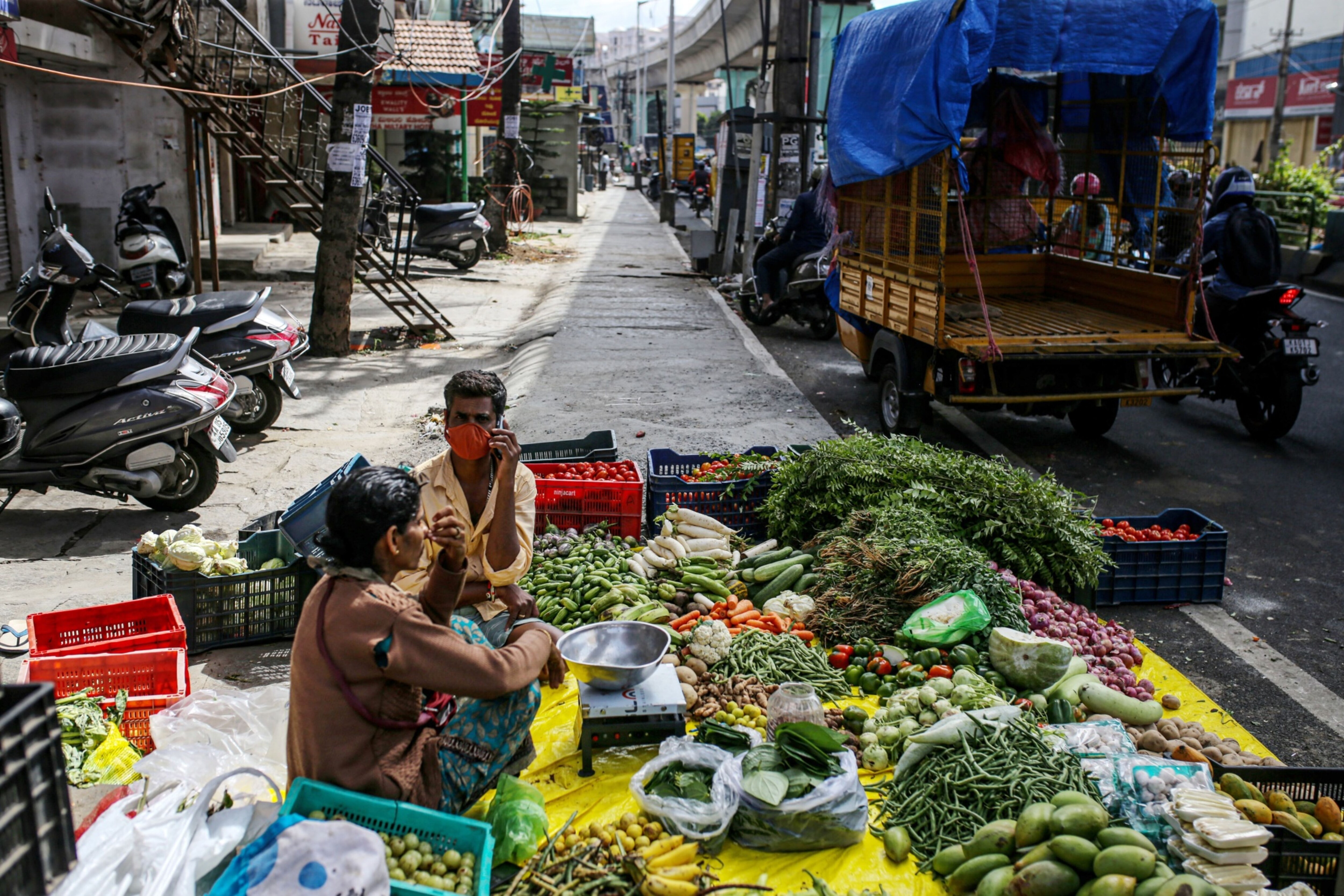 Roadside vendors sell vegetable in Bengaluru, India, on Monday, June 21, 2021. Photographer: Dhiraj Singh/Bloomberg