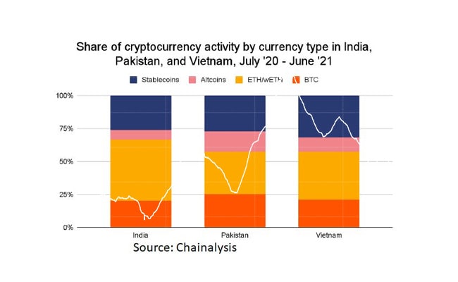 India, Vietnam and Pakistan are helping to lead the expansion of cryptocurrency markets in central and southern Asia, according to Chainalysis.
