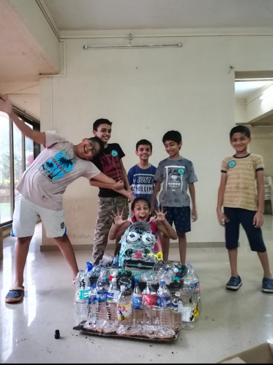 We also promised to see installations and reward the school with pencils recycled from plastic. For, larger housing societies, I thought why not use the plastic they have donated to convert it into big garbage bins.