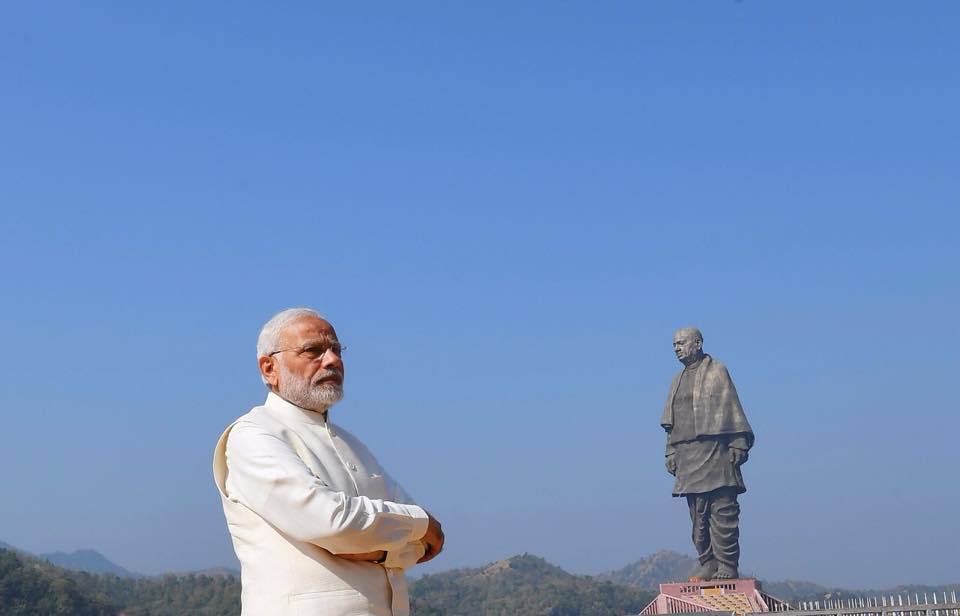 Prime Minister Narendra Modi at the 'Statue of Unity', in Kevadiya, Gujarat, on Oct. 30, 2018. (Photograph: Narendra Modi/Facebook)