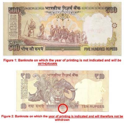 It is easy to identify pre-2005 notes as they do not have the year of printing mentioned on their reverse side. In notes issued post 2005, the year of printing is visible at the bottom.