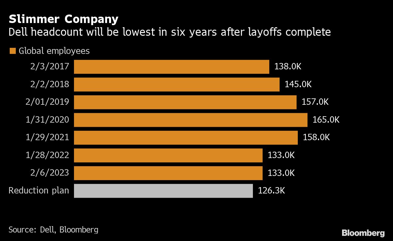 The company is experiencing market conditions that “continue to erode with an uncertain future,” Co-Chief Operating Officer Jeff Clarke wrote in a memo viewed by Bloomberg. The reductions amount to about 5% of Dell's global workforce, according to a company spokesperson.