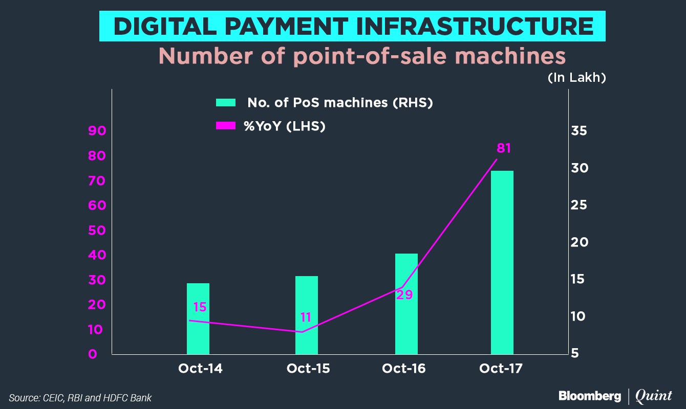 According to an EY report, there were only 693 machines per million of India's population, compared to 32,995 terminals per million people in Brazil and 4,000 terminals per million people in China.