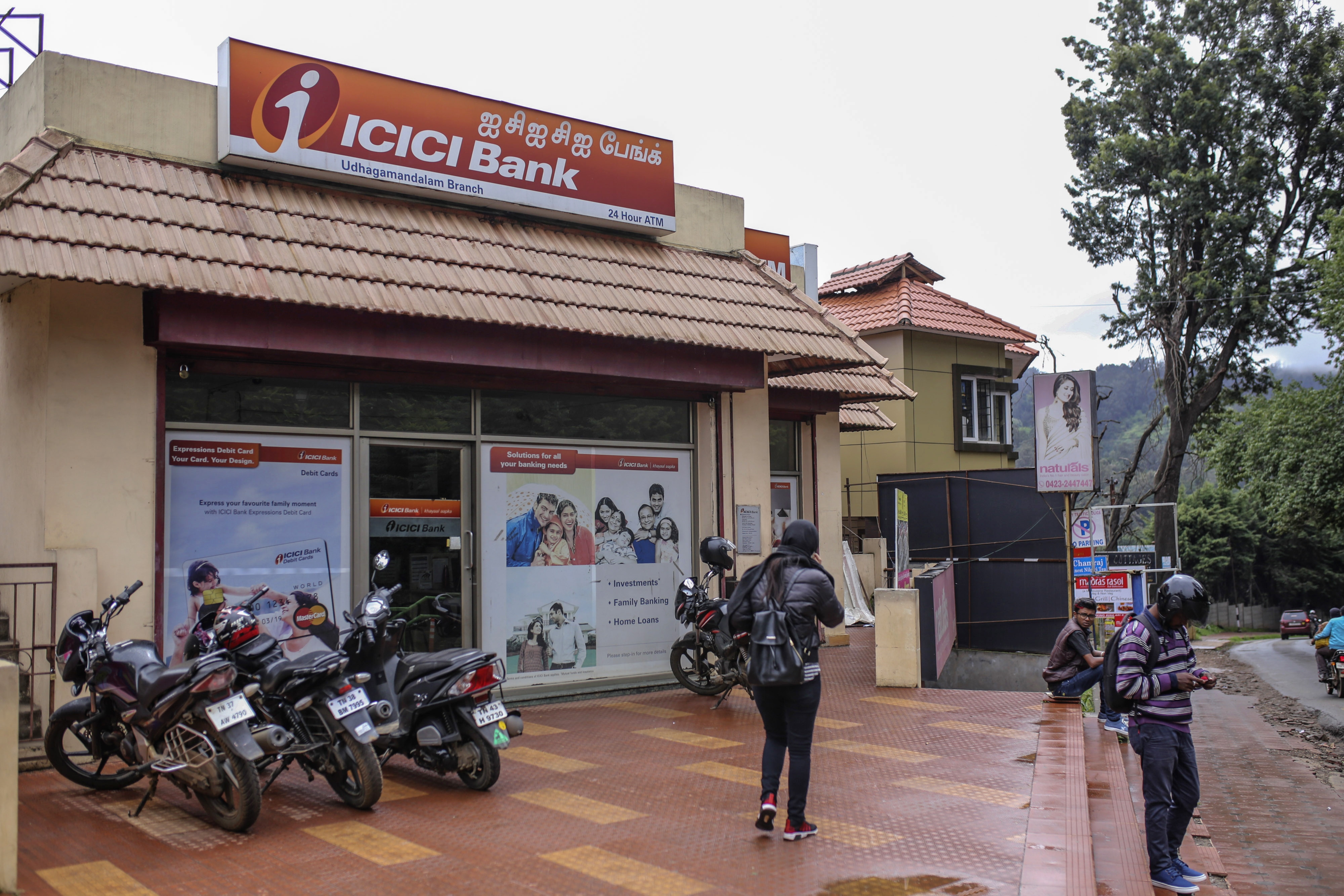 An ICICI Bank Ltd. branch stands in Ooty, Tamil Nadu. (Photographer: Dhiraj Singh/Bloomberg)