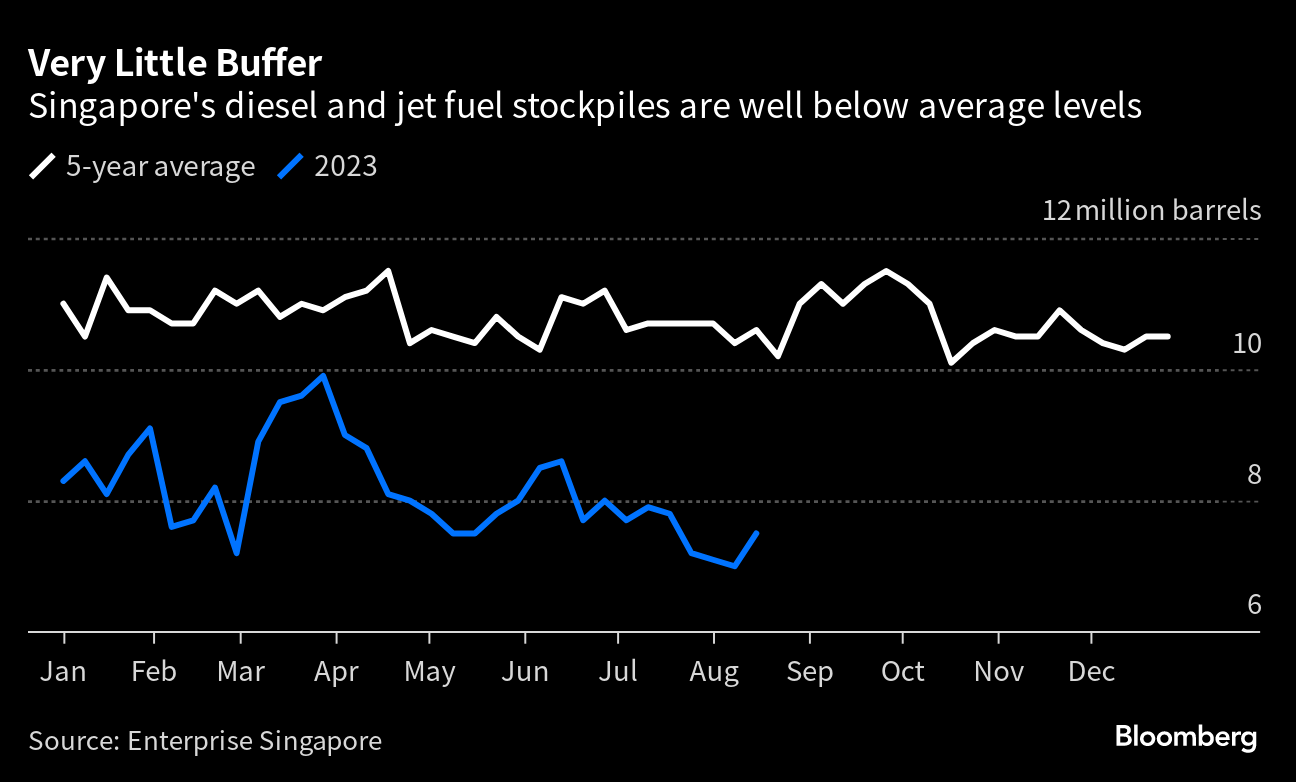 “We should be building stocks now as they usually begin drawing seasonally from September,” said Eugene Lindell, head of refined products at industry consultant FGE. “There is a worry that stocks will not build sufficiently before October, and we will then start seeing draws from what threatens to be a low base.”