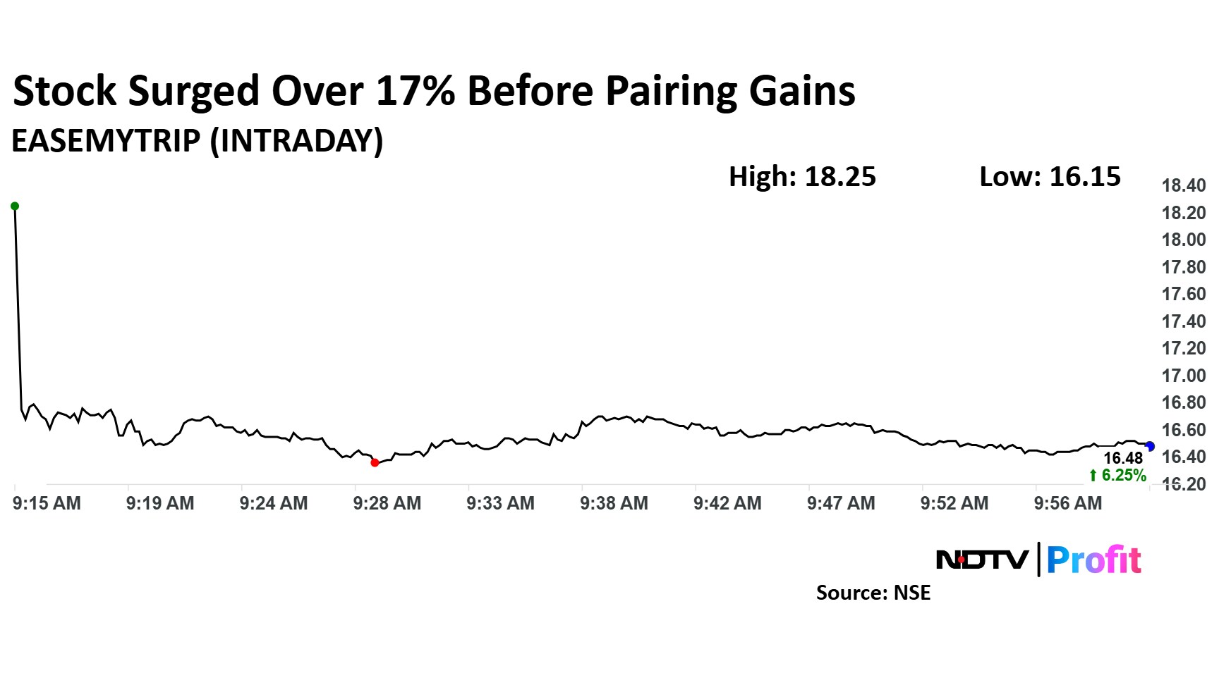 EaseMyTrip parent Easy Trip Planners Ltd.'s stock surged over 17% on Monday after the company's former Chief Executive Officer and Co-founder Nishant Pitti announced that he will retain the position of chairman in the company, with his role particularly focusing on international expansion. His brother, Rikant Pitti, who previously served as the company's chief financial officer, has been appointed as the new CEO.
