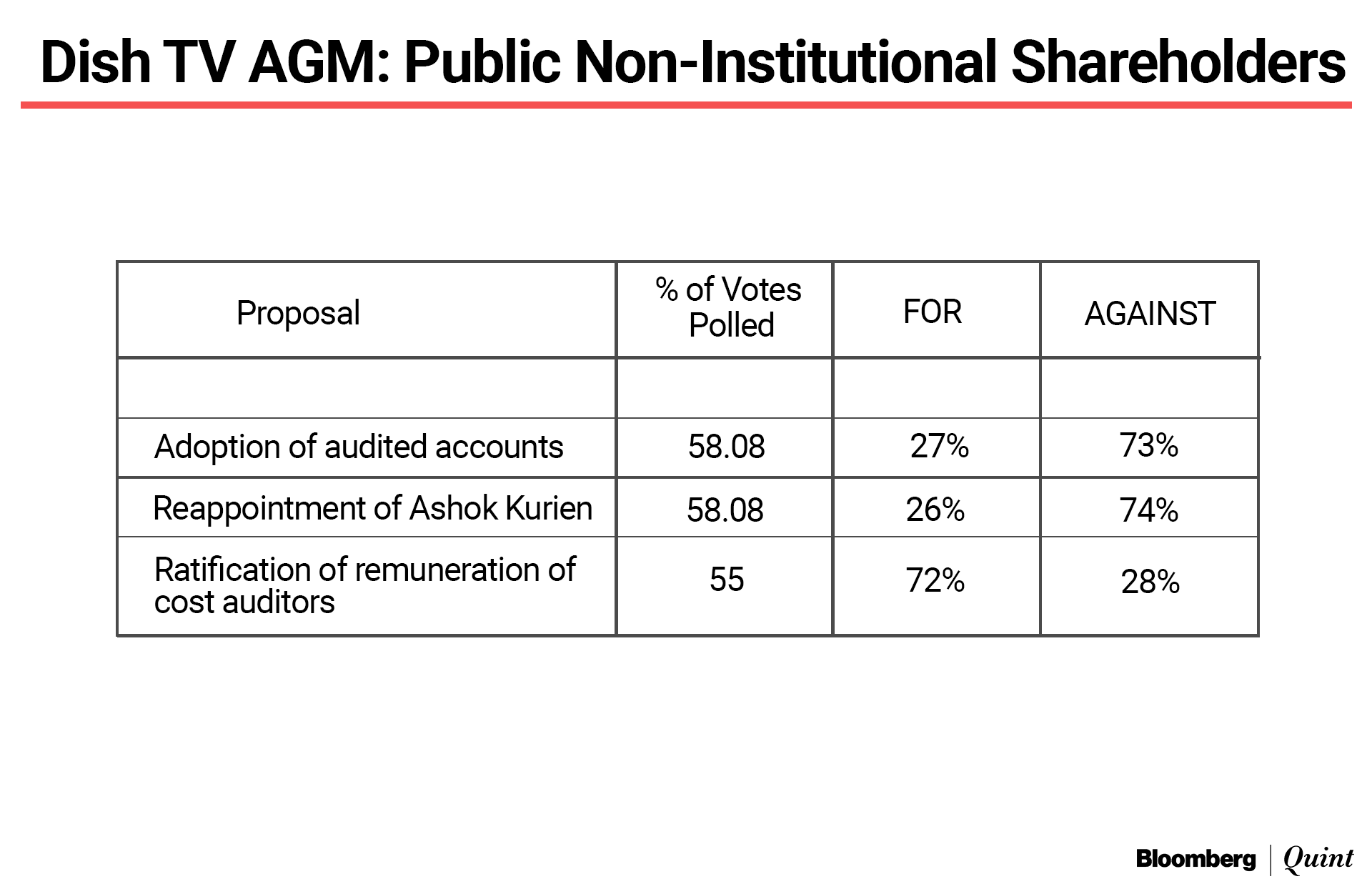 Dish TV India Ltd.'s annual general meeting results revealed more than just the failure of resolutions that were put to shareholder vote on Dec. 30. It showed that the company and its promoter are up against not just large institutional shareholders, but also smaller investors.