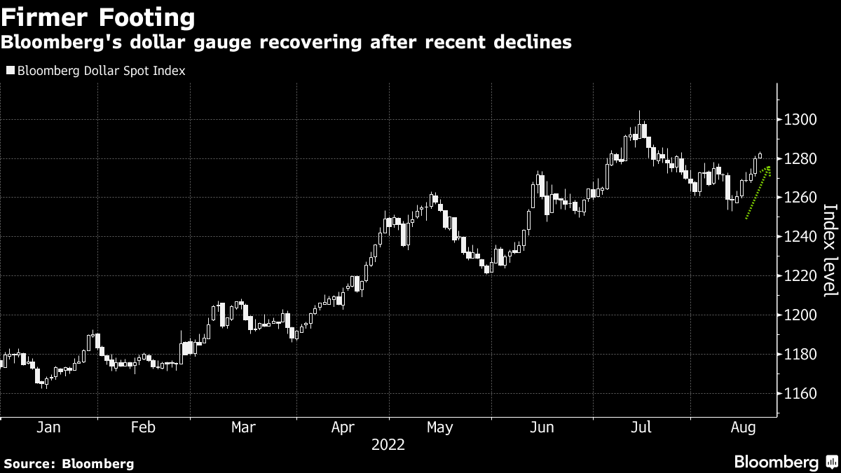The US currency's rebound comes amid a debate on whether or not it peaked in mid-July after signs emerged that aggressive policy tightening may finally be cooling the quickest US inflation in four decades. Hedge funds turned bearish on the greenback for the first time in a year last week as some wagered its best days may be over.