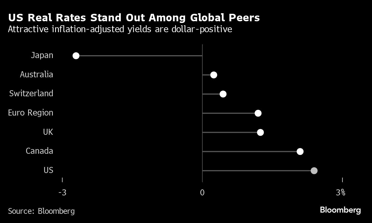 The dollar's gains this year have also notably come alongside a surge in US equities — highlighted most recently by the rally in chipmaker Nvidia Inc.'s shares after its blockbuster earnings report last week — that has brought a steady supply of capital into the US. Such flows are indicative of long-term, consistent returns on capital that have also served to create a floor for the greenback.