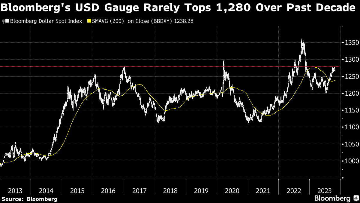 A Bloomberg index of the dollar has traded sideways since hitting its year-to-date peak earlier this month, and even US Treasury yields spiking to their highest in more than a decade last week failed to ignite enough momentum for the currency to push higher.
