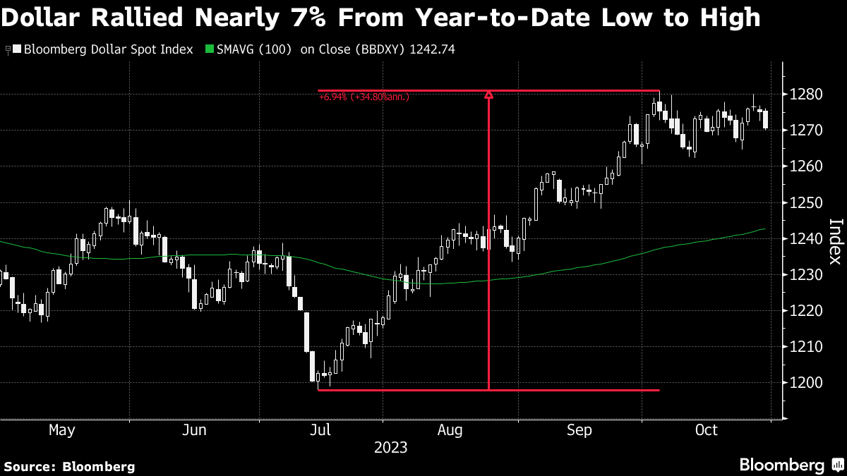 “The fact that the dollar hasn't managed to push higher against a backdrop of usually positive drivers suggests the strong rally from mid-July to early October has run its course,” said Rodrigo Catril, currency strategist at National Australia Bank in Sydney. “Long positioning in the dollar provides a suitable headwind to any further strength.”