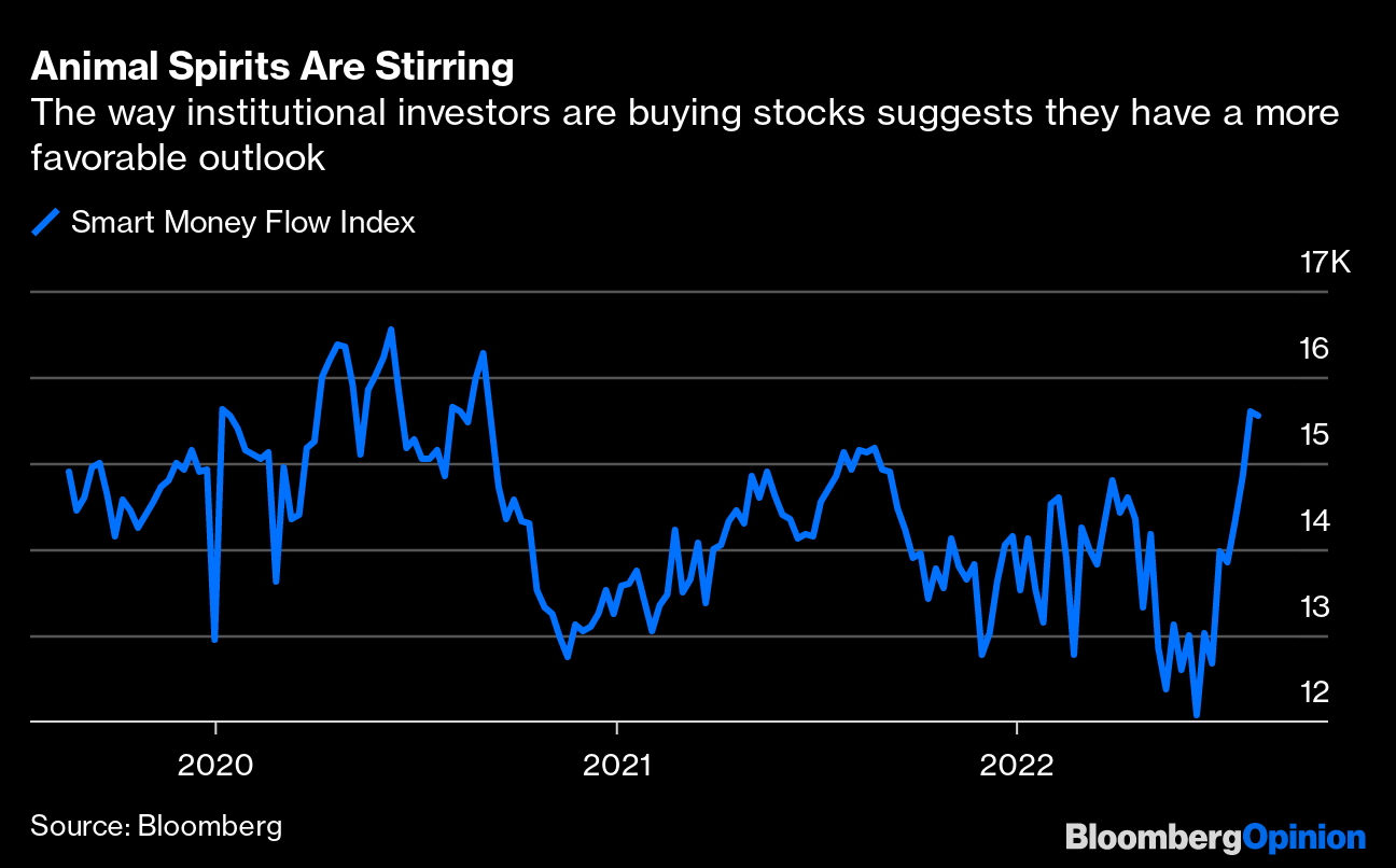 (Bloomberg Opinion) -- Just like old times. That's what it must seem like with the S&P 500 Index up about 15% since mid-June and poised for its fourth consecutive weekly gain, its longest winning streak of the year. Those who question the durability of this rally, given the slowdown in the economy and a Federal Reserve that has doubled down on its plan to keep raising interest rates, can take comfort in one key metric: the smart money.