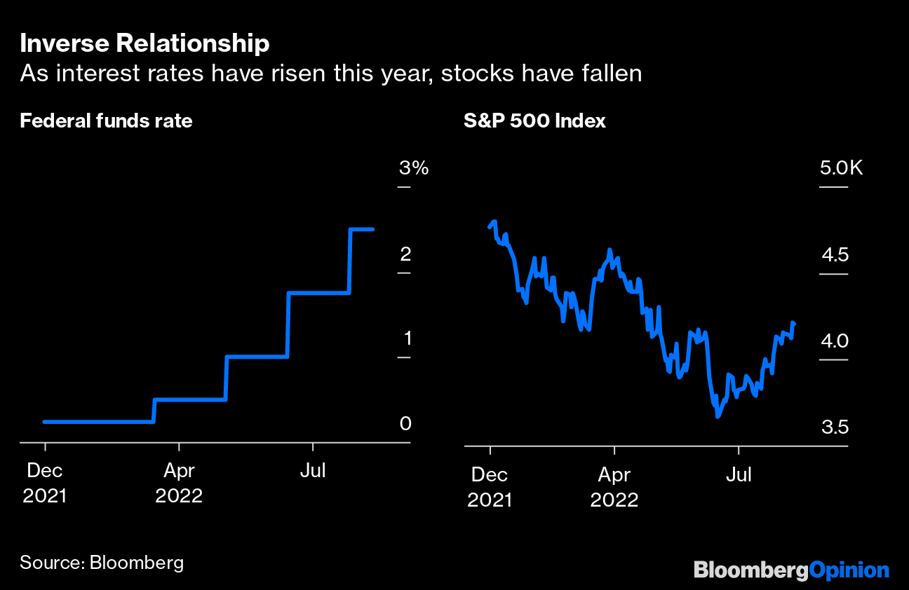 All this is not to say that there aren't plenty of headwinds ahead for stocks. For one, the Fed is nowhere near done raising rates. Bloomberg News's Matthew Boesler reports that Minneapolis Fed President Neel Kashkari, who before the pandemic was the central bank's most dovish policy maker, said Wednesday that he wants to see the Fed's benchmark interest rate at 3.9% by the end of this year and at 4.4% by the end of 2023. It's now in a range of 2.25% to 2.50%.