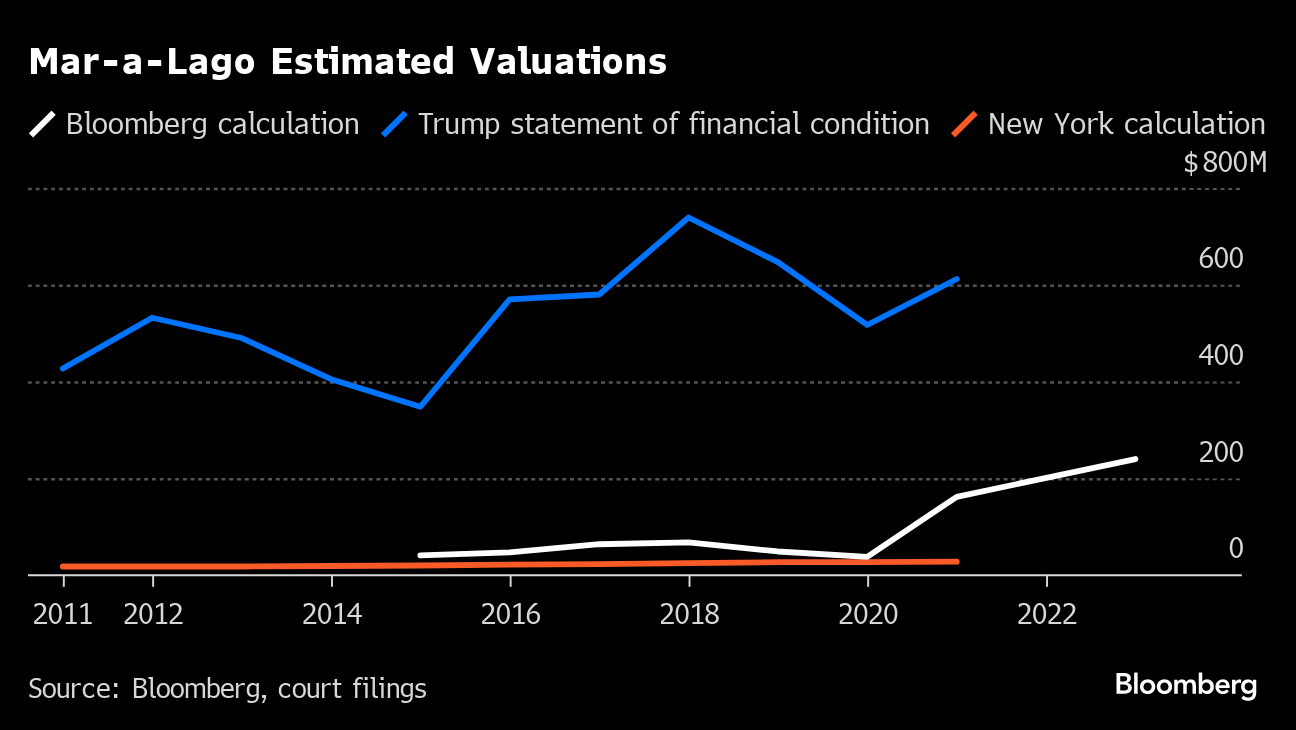 Bloomberg values Mar-a-Lago at $240 million, based on a combination of comparable residential property sales in the area as well as its value as a business, reflecting some uncertainty around its future status.
