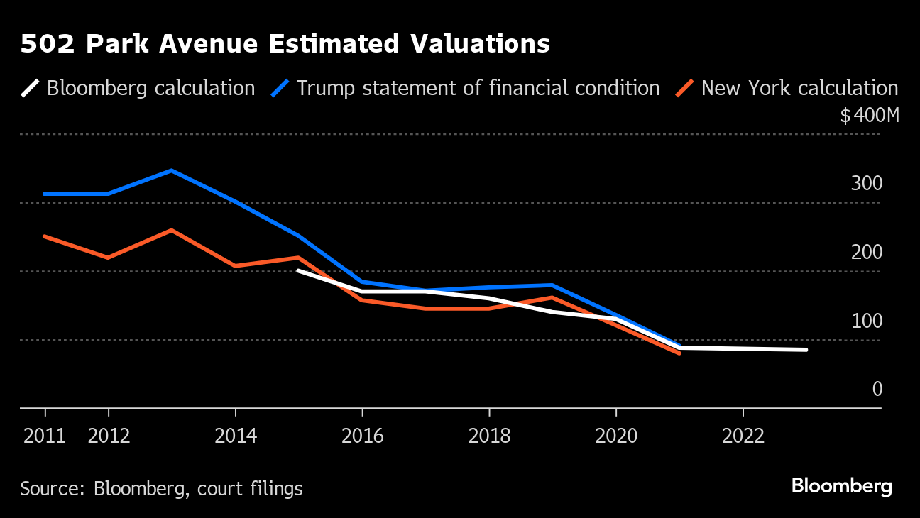 Here's a look at New York state's valuation of four high-profile Trump properties where the prosecution alleges fraud occurred, along with Bloomberg's own approach to assessing the assets.