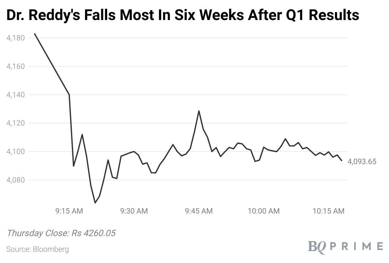 Shares of Dr. Reddy's Laboratories Ltd. fell even as analysts maintained their bullish outlook on the company's growth outlook despite multiple one-offs hurting profitability in the first quarter.