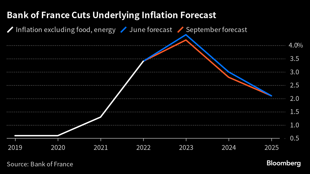 His remarks come a day after the Bank of France, which Villeroy heads, published an update of macroeconomic forecasts that showed upward revisions to inflation for this year and next. But projections for weaker readings of underlying measures that the ECB has recently focused on were lowered.