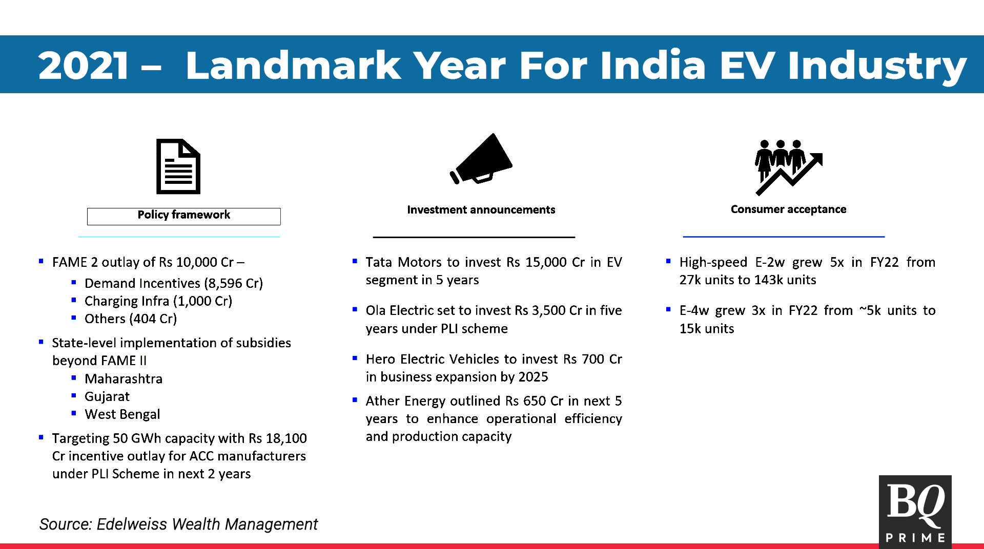 Edelweiss Wealth Management sees multiple investment opportunities in India's electric vehicle segment.