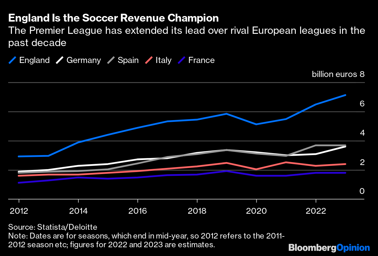 (Bloomberg Opinion) -- As long as the music's playing, you've got to get up and dance, as the former Citigroup Inc. boss Chuck Prince said. His much-pilloried 2007 comment on why the bank was still writing leveraged loans as tremors spread through the subprime market offers a useful prism for considering the state of football in Britain. The music is still playing in the soccer business, and plenty are dancing. That doesn't mean all is well.
