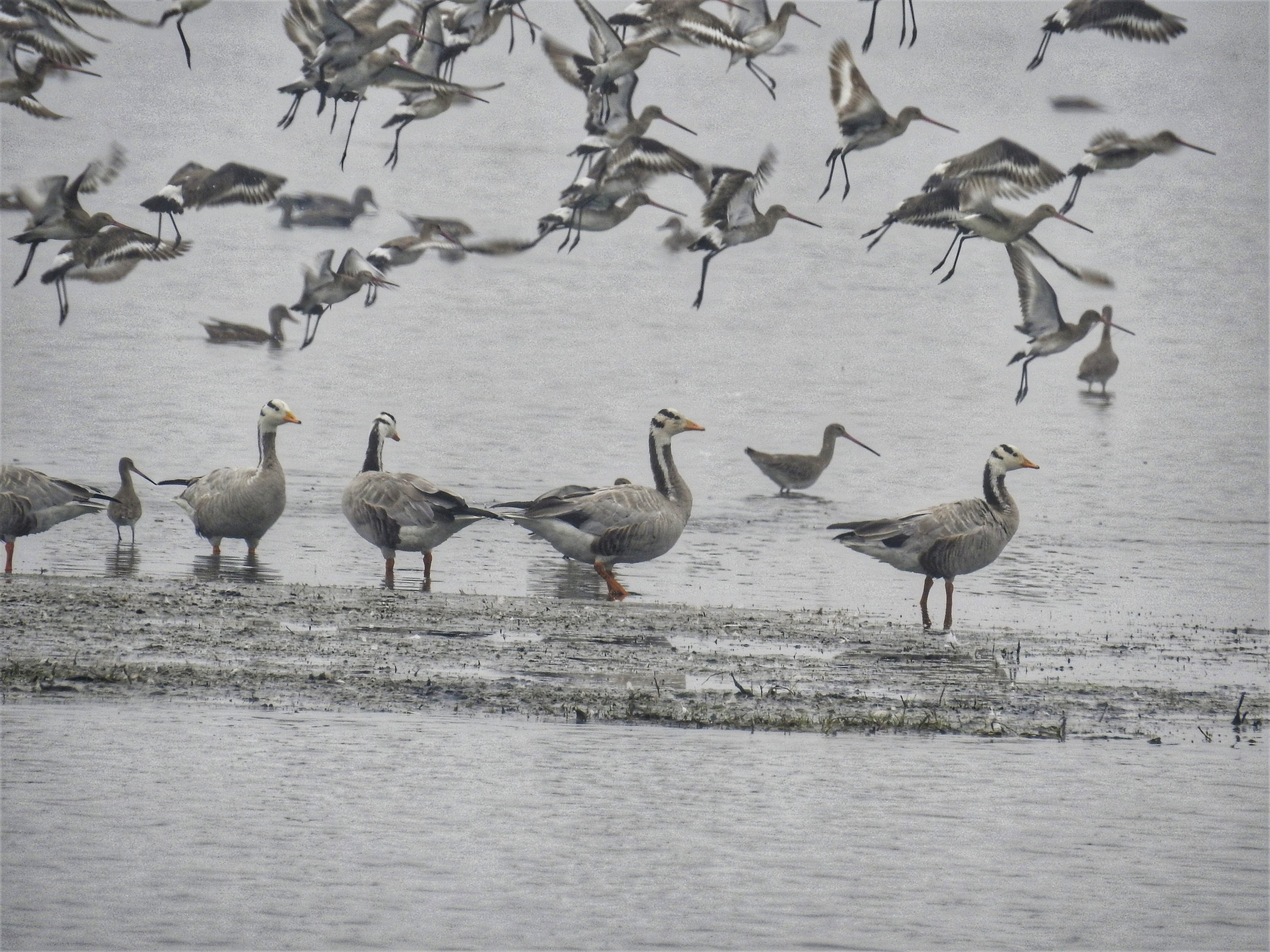 Bar-headed geese stand on the coast of Odisha. These are migratory birds, crossing over the Himalayas to come to India in the winter. (Photographer: Neha Sinha)