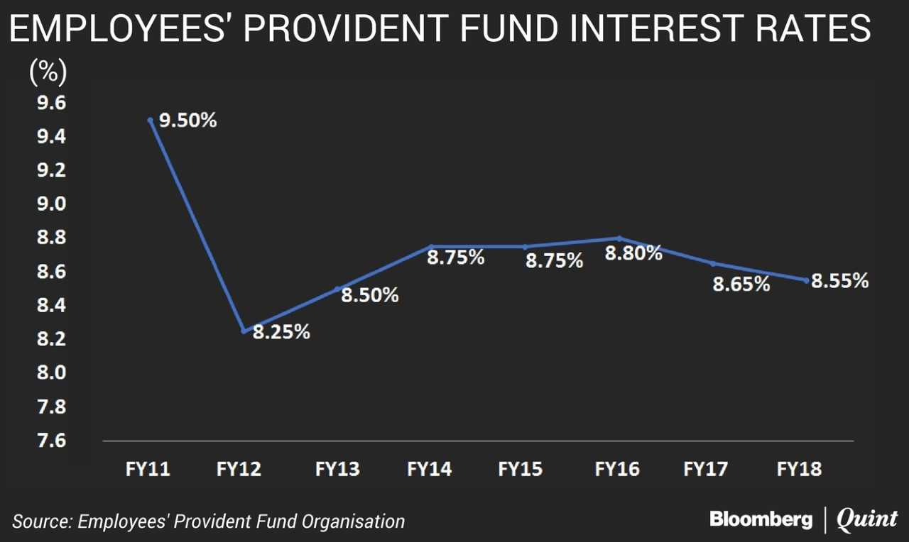 The Employees' Provident Fund Office today lowered the rate of interest on employees provident fund to 8.55 percent for its over 6-crore subscribers for 2017-18, from 8.65 percent in the previous fiscal.