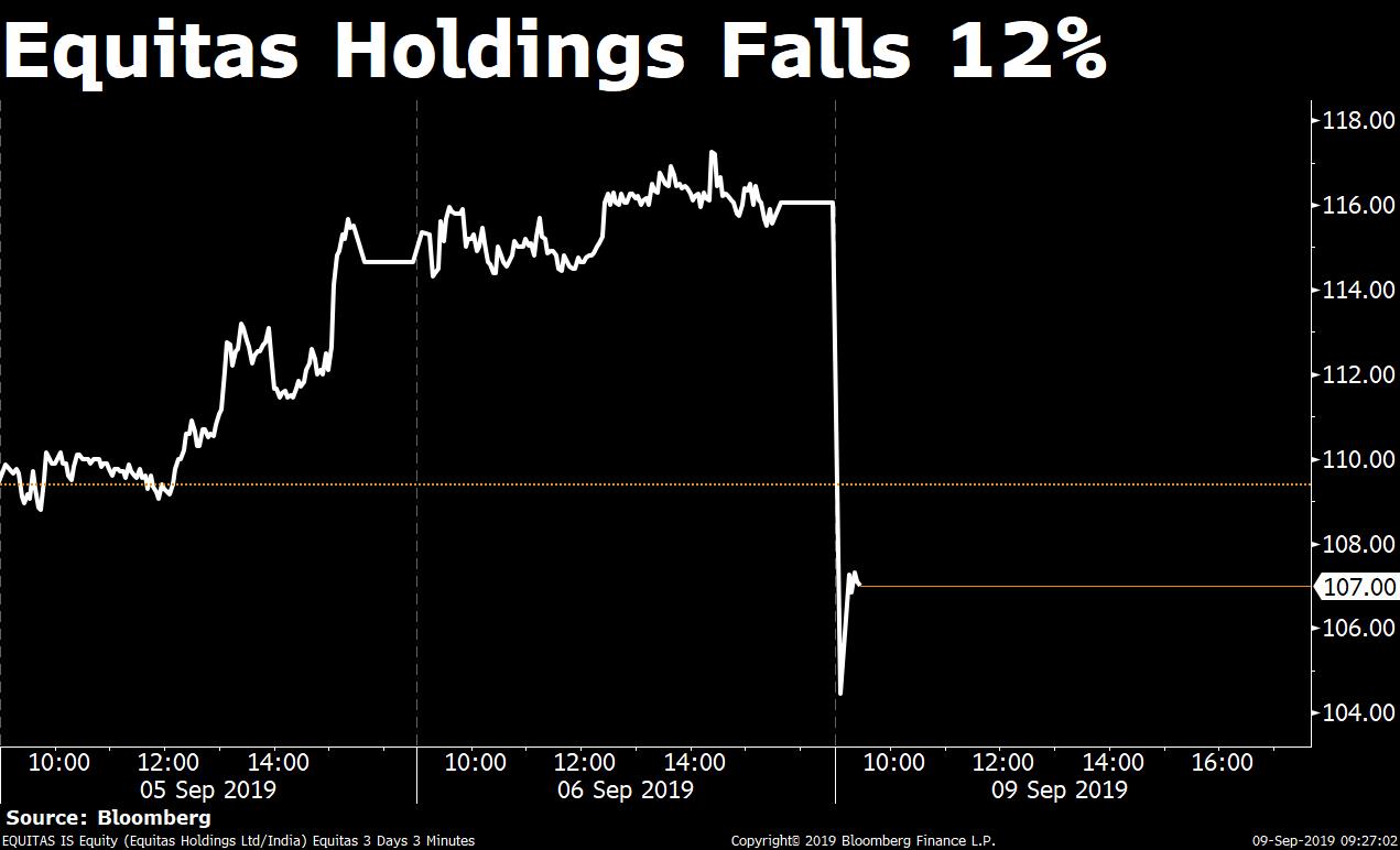 Shares of Equitas Holdings, which owns 100 percent of the microfinance business, slumped as much as 12 percent—its biggest intraday fall in more than a month. That compares with nearly a 0.5 percent gain in the benchmark BSE Sensex.