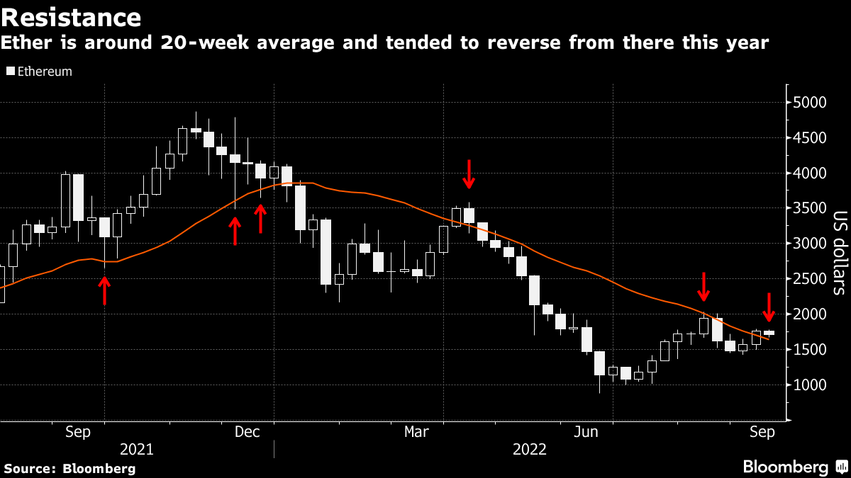 Before the shift from a so-called proof-of-work to proof-of-stake blockchain, expected Sept. 15, crypto and global markets have to get through the US inflation report Tuesday. The data will shape views on the likely severity of US monetary-policy tightening, which threatens to sap liquidity.