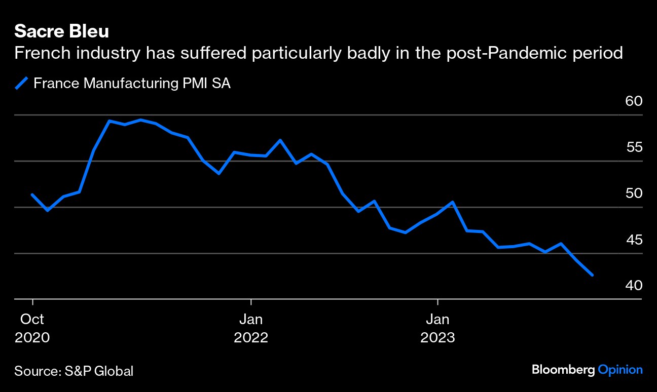 Third-quarter earnings from euro-area businesses highlight the gulf with the US. With nearly half of the Euro Stoxx 600's companies reporting so far, 57% have beaten estimates with earnings per share falling 8% annually, according to JP Morgan Chase & Co. analysts. This is some way behind the S&P 500 picture, where 78% of companies beat expectations and average EPS has grown 12%. The US economy has been consistently stronger than the euro area since the pandemic, but the gap widened in the past quarter. European equities are cheap for a reason.