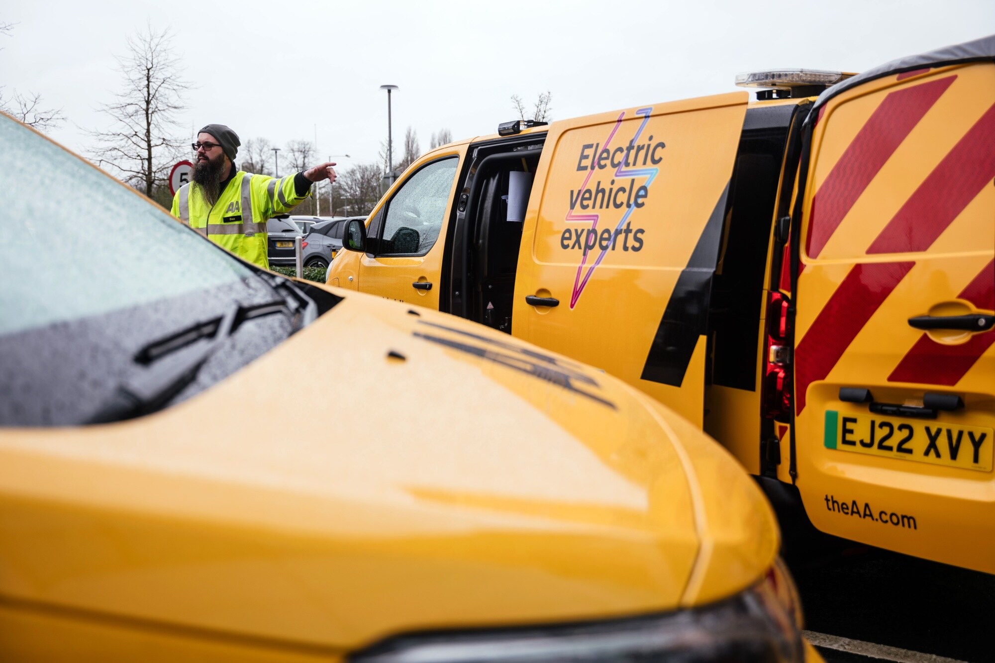 An AA patrol for electric vehicles in Birmingham, England.
