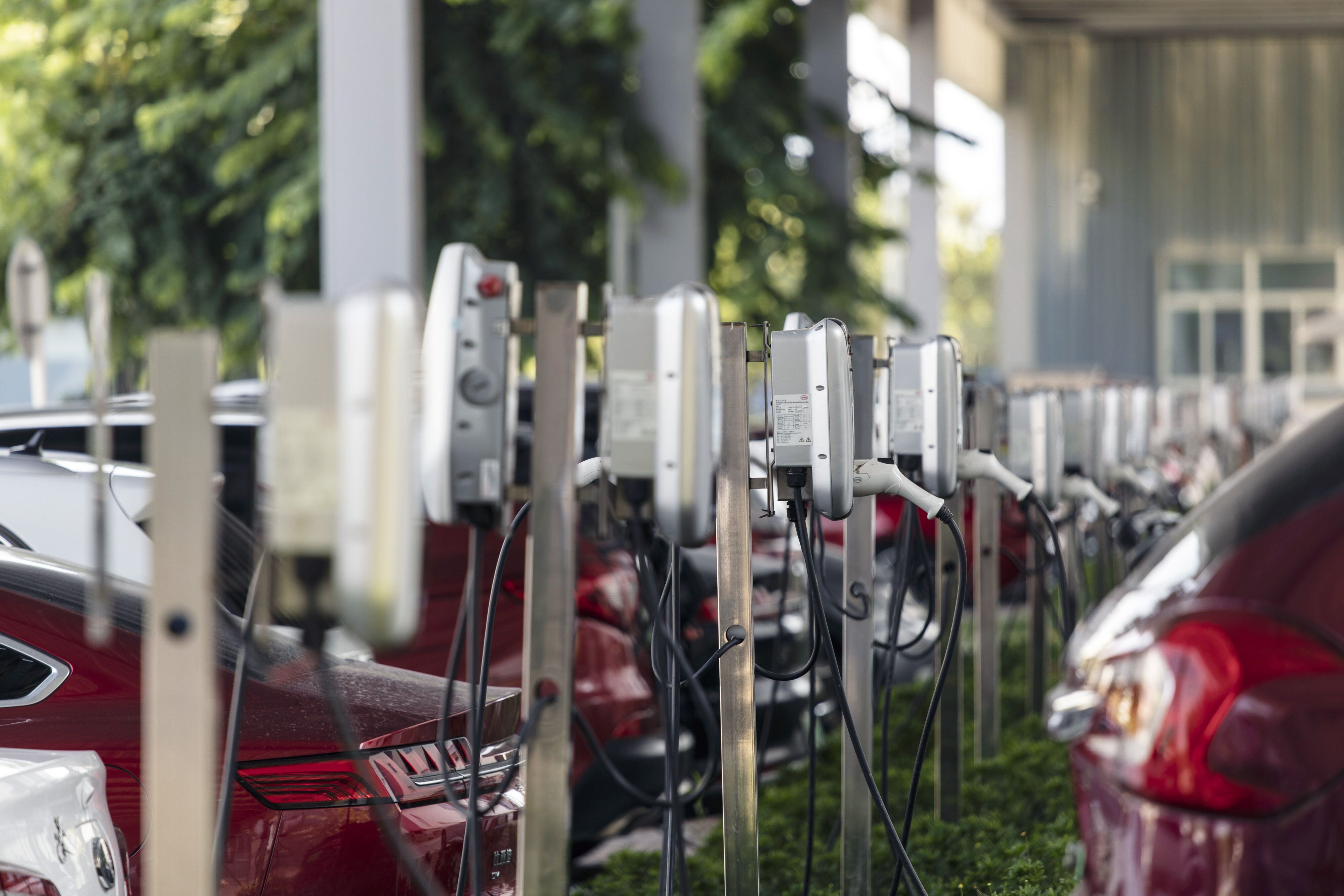Electric vehicle chargers in Chongqing, China. Photographer: Qilai Shen/Bloomberg