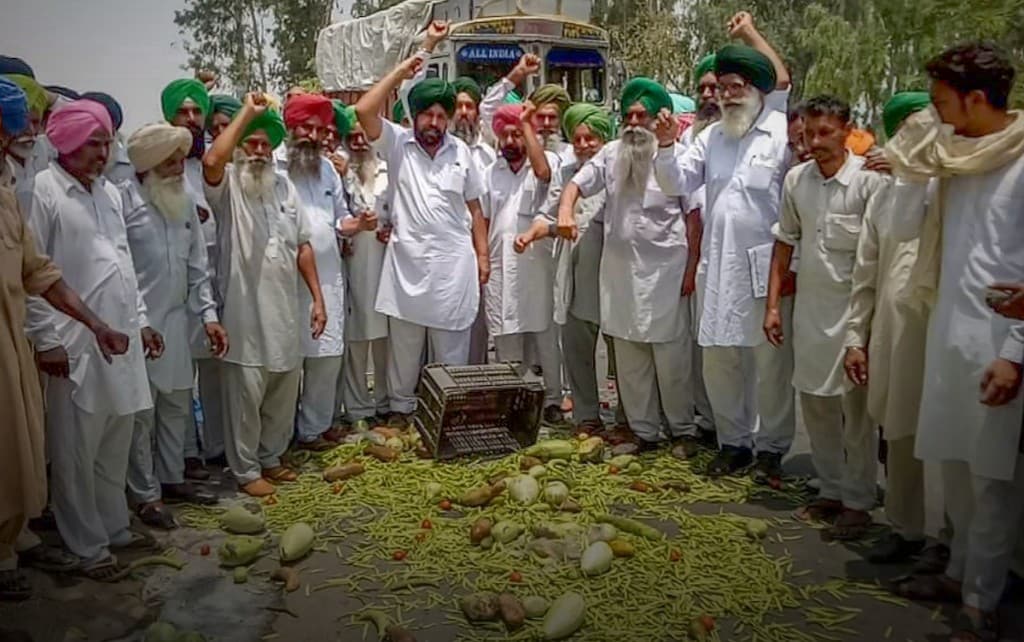 Farmers across several states today launched a 10-day agitation to press their demands of loan waiver and right price for crops. Protesting farmers dumped vegetables, milk and other farm produce on roads and blocked supplies to cities in several states.