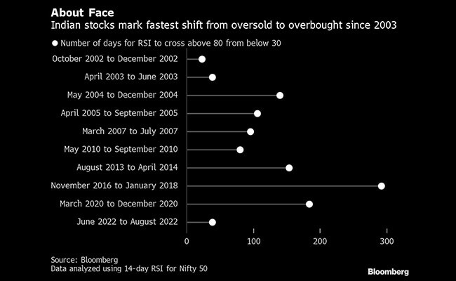 That drove the benchmark from levels described by traders as oversold to strongly overbought territory in just 39 sessions, the quickest pace since 2003.