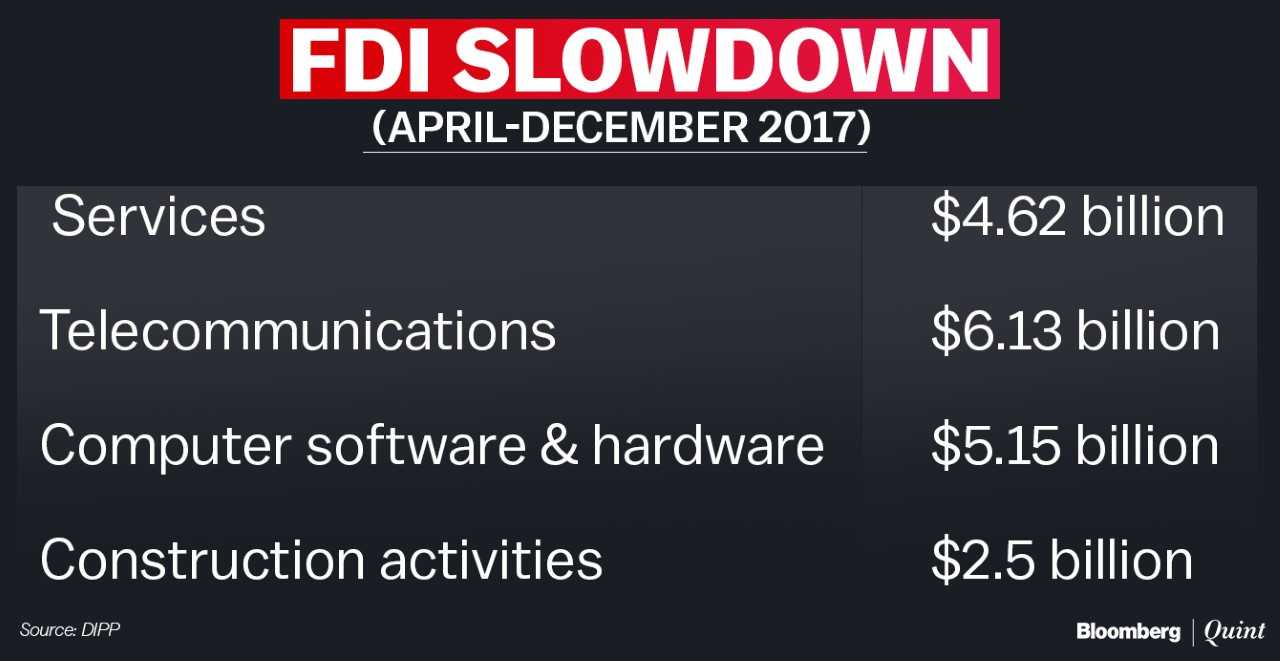 FDI inflows stood at $35.84 billion during the April-December period of last fiscal, 2016-17. However, in rupee terms, the FDI recorded negative growth as the inflows dipped 4 percent to Rs 2,31,457 crore, according to data provided by the Department of Industrial Policy and Promotion.