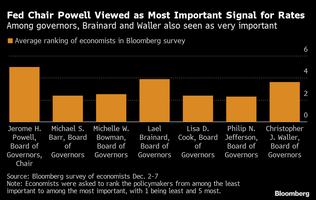 That's according to a Bloomberg survey of economists who picked the chair and New York Fed President John Williams as the key voices to listen to, followed by Vice Chair Lael Brainard.
