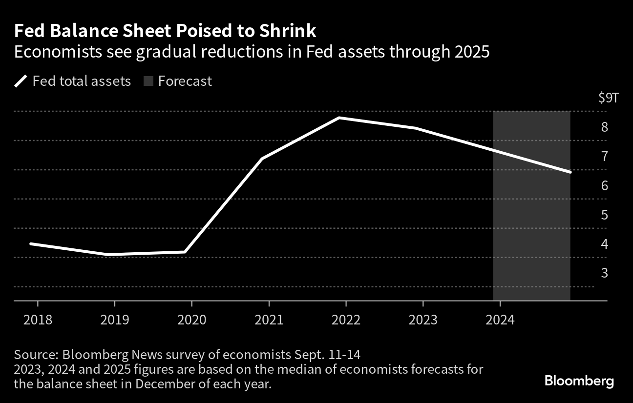 The FOMC will continue to shrink the balance sheet through not replacing maturing bonds, and the economists expect this to continue even after the start of rate cuts. The median economist expects the balance sheet to drop to $7.8 trillion by December and $6.8 trillion by 2025.