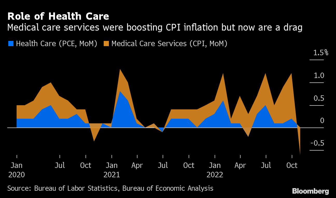 As a result, health care makes up nearly a fifth of the core PCE gauge but only around 11% of the core CPI, said Omair Sharif, founder of Inflation Insights LLC.
