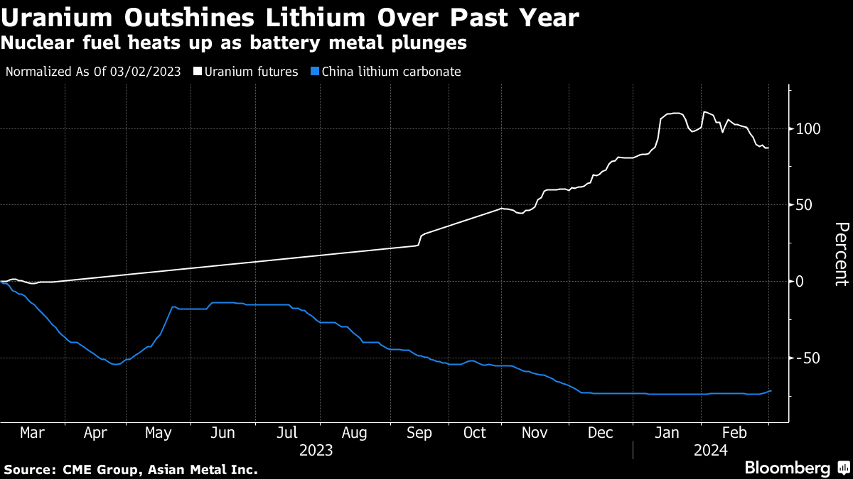 Lithium and uranium — two metals touted for their role in the energy transition — will be spotlighted at this week's Prospectors & Developers Association of Canada annual gathering. Lithium's shine has faded after hitting record highs in November 2022, with demand for the key electric-vehicle battery ingredient slowing amid fears of a supply glut. Radioactive uranium has emerged as the next hot metal, with prices soaring amid concern of demand shortfalls for the nuclear power plant fuel. Investors can hear the case for both during PDAC, which runs through Wednesday.