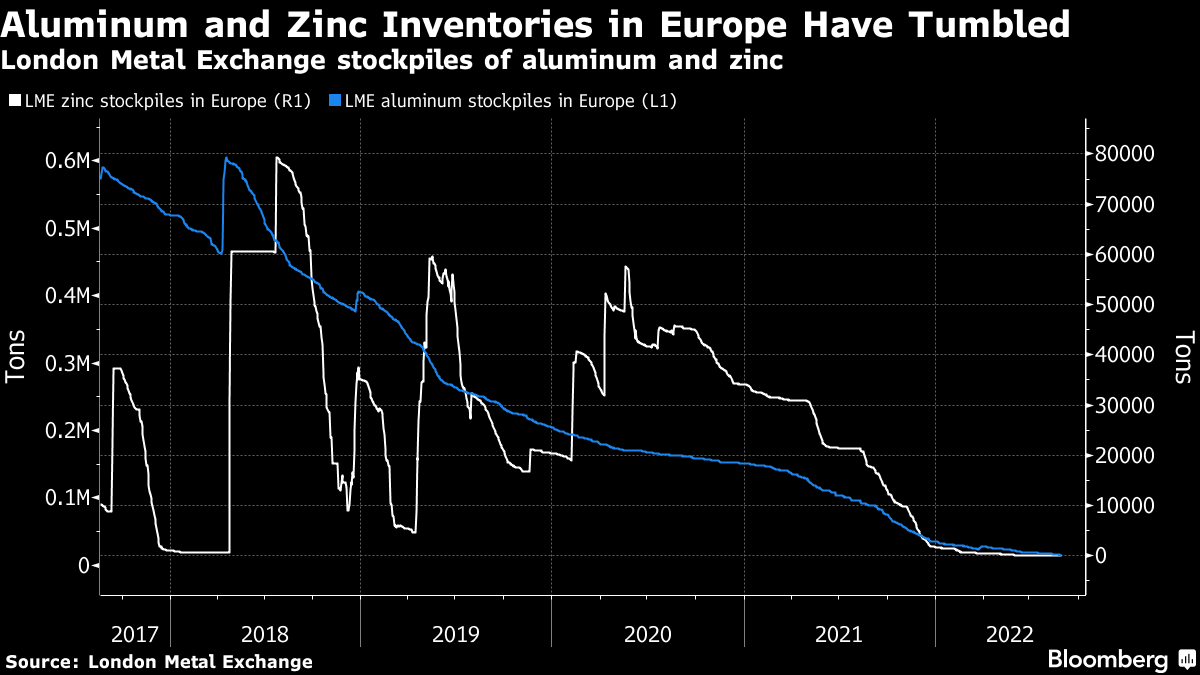 Europe lost about half of its zinc and aluminum smelting capacity over the past year as jaw-dropping electricity prices make the energy-intensive production unaffordable. More capacity is set to go offline if the situation doesn't improve.