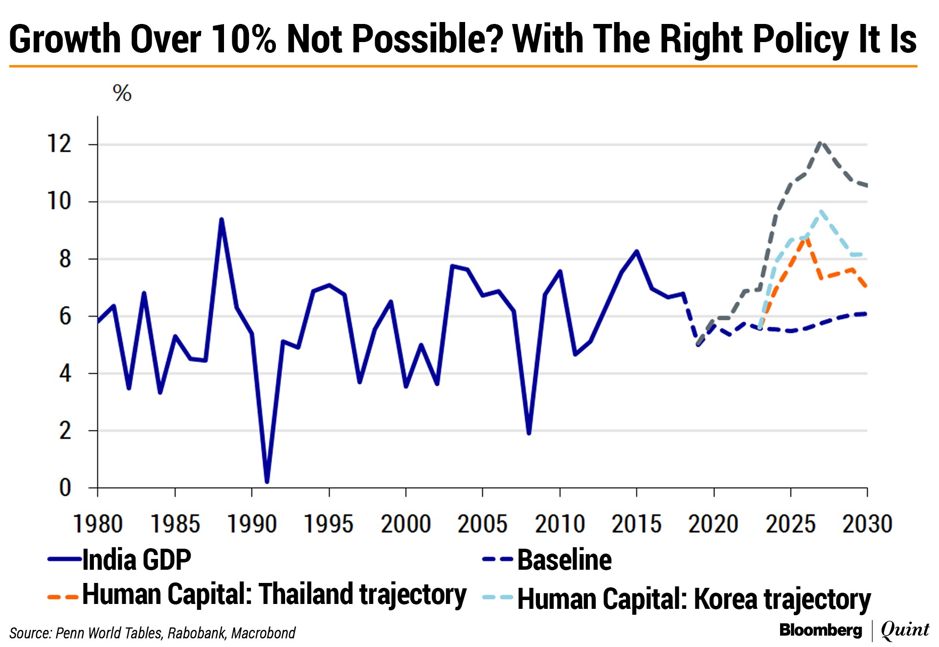 We adopt a relatively optimistic assumption that capital can contribute to GDP growth by 2 percentage points to 2.5 percentage points on an annual basis. If, however, India's unresolved balance sheet issues weigh on investment—as India's former Chief Economic Advisor has argued—our capital deepening scenario might be too optimistic and annual economic growth could end up somewhere around 5 percent on average.