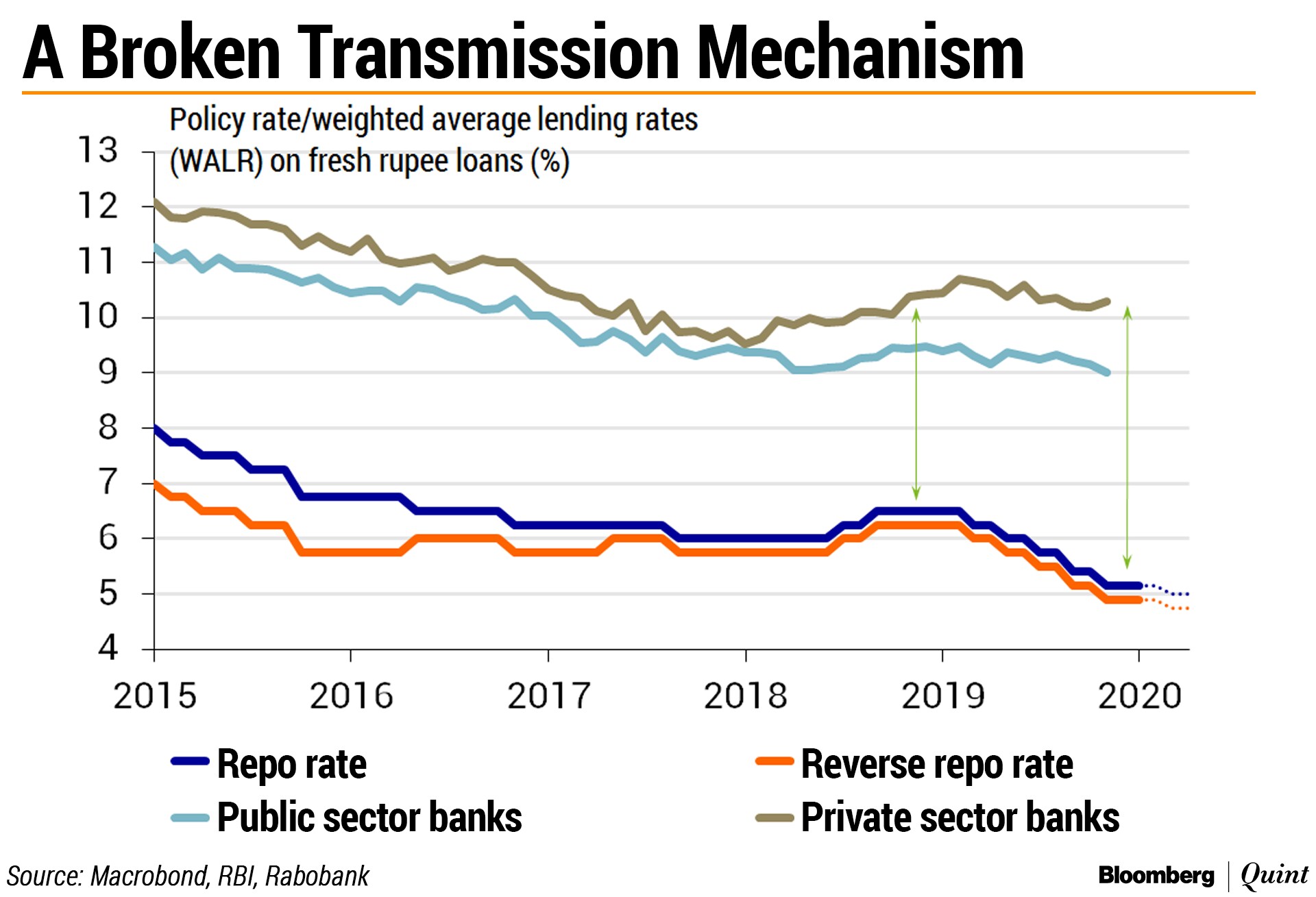 Meanwhile, engineer Das M.Tech added 135 basis points of nitroglycerin—in the form of policy rate cuts—to the fuel tank in 2019. Unfortunately, this failed to kick-start the engine, mainly because the transmission to the engine had broken down due to a ruptured fuel pipe. This rupture was partly caused by the government itself, tapping fuel from the car to plug its own fiscal deficit.