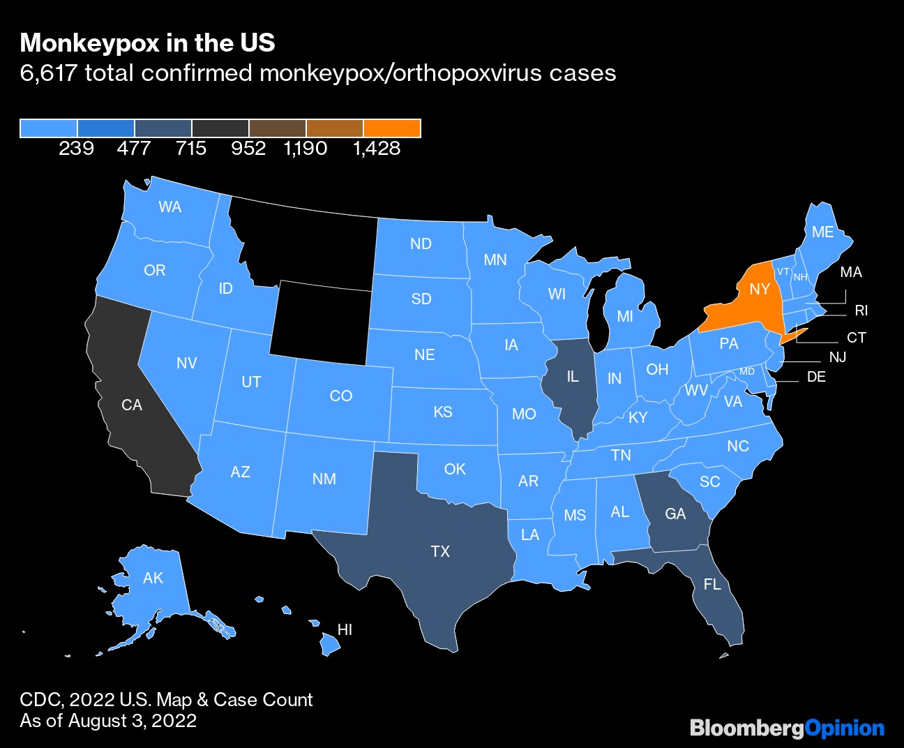 (Bloomberg Opinion) -- As monkeypox cases in the US climbed to more than 7,100, Health and Human Services Secretary Xavier Becerra declared the outbreak a public health emergency. It's long past time.The formality came almost two weeks after the World Health Organization had officially deemed it an emergency — and days after individual states, including California, Illinois, and New York, had made their own call on the virus.