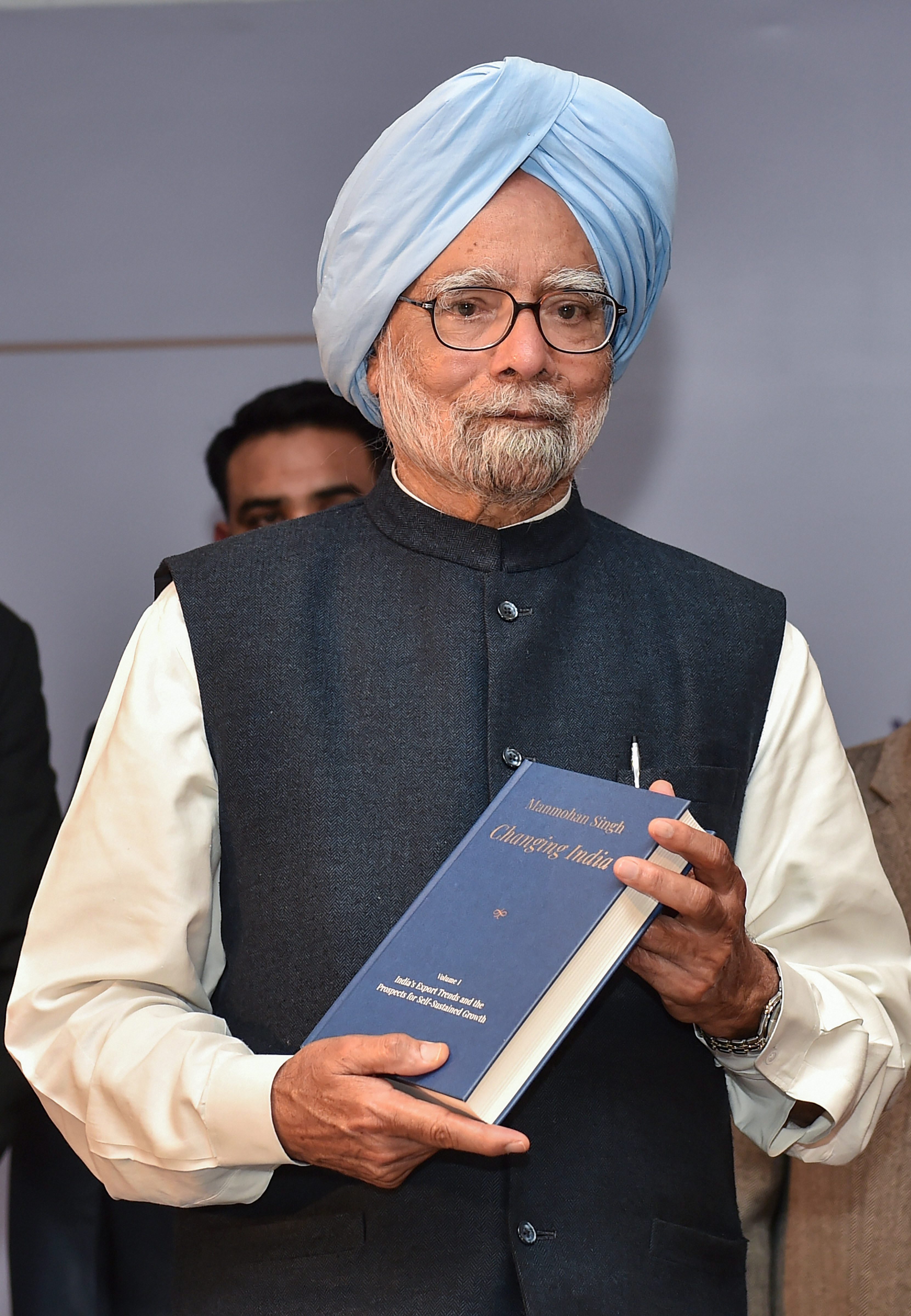 Former Prime Minister Manmohan Singh launches his book “Changing India, a five-volume book, in New Delhi (Source: PTI)